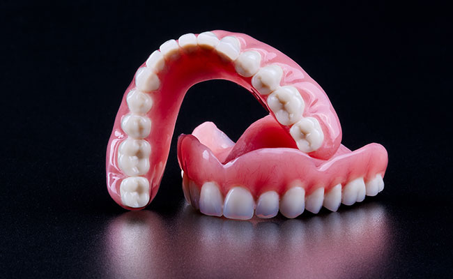 Total prosthesis: The total prosthesis is placed when the patient has no teeth in the oral cavity. It consists of a support structure with acrylic resin and resin teeth, which is held to the patient’s jaw. This prosthesis respects the patient’s profile and chewing functions. It is called total mobile as it can be removed by the patient and washed at any time of the day. To place this type of prosthesis the patient must have a certain amount of bone so that it stays in place naturally.